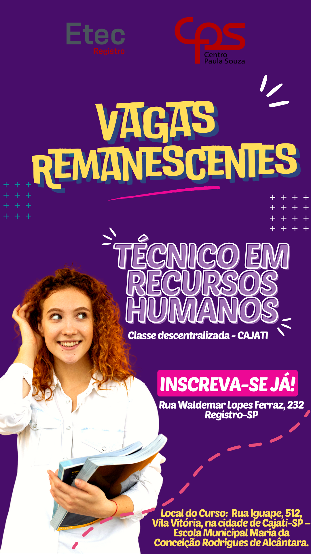 Processo Especial de Seleção de Candidatos para preenchimento de Vagas Remanescentes do Curso Técnico em Recursos Humanos – Classe Descentralizada de Cajati, para o 1º módulo, no 2º semestre